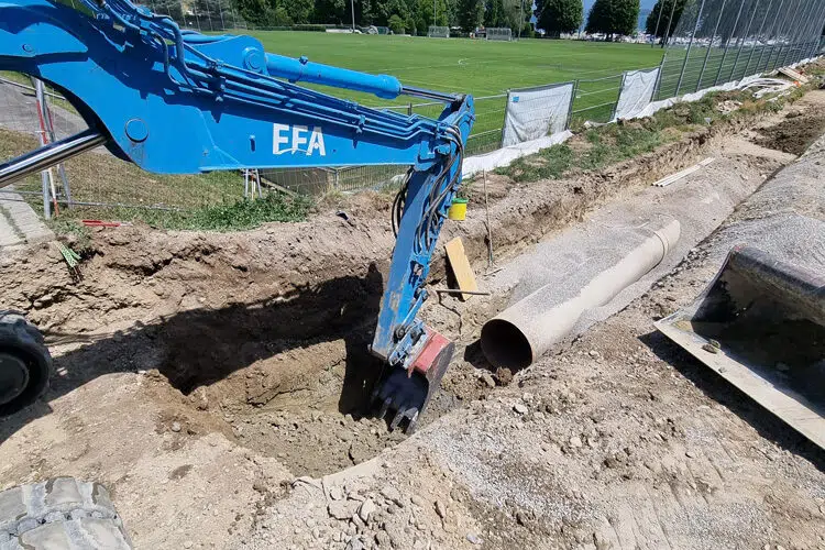 En raison d’une surcharge de l’exutoire principal de la Commune de Prangins au niveau des eaux claires, dimensionnement et réalisation d’un nouveau collecteur DN 1000mm en polyester renforcé de fibres de verres (PRV) entre le Château de Prangins et le lac Léman. Légalisation et réalisation d’un nouvel exutoire au lac. Création de deux chambres brise-énergie en travers de terrains agricoles et sportifs avec traversée de la route cantonale RC 1-B-P.
